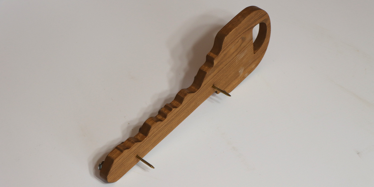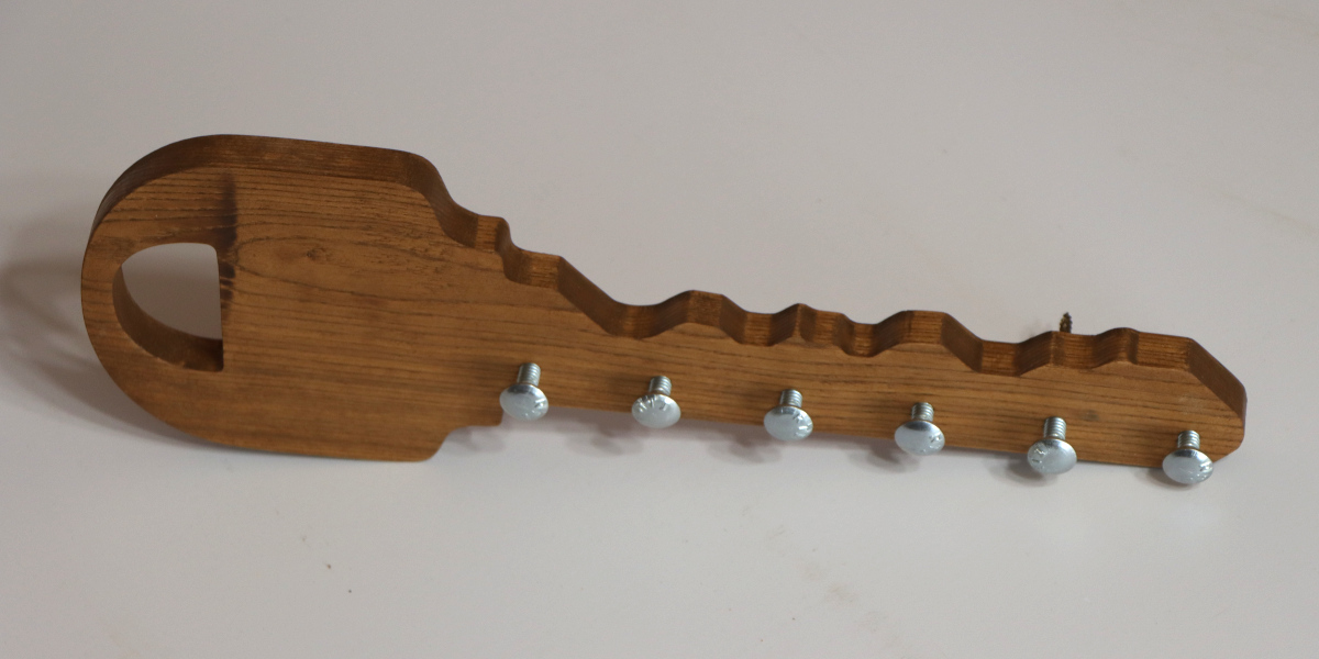 This key holder can hold six sets of keys, and is the middle sized key holder in the key shaped key holder collection. Carved from 1/2" reclaimed oak it will add a touch of elegance to any wall it's mounted on.
